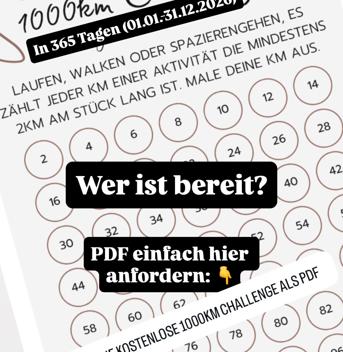365 Tage, 1000 km – das bedeutet im Durchschnitt etwa 2,74 km pro Tag, also wirklich gut machbar.